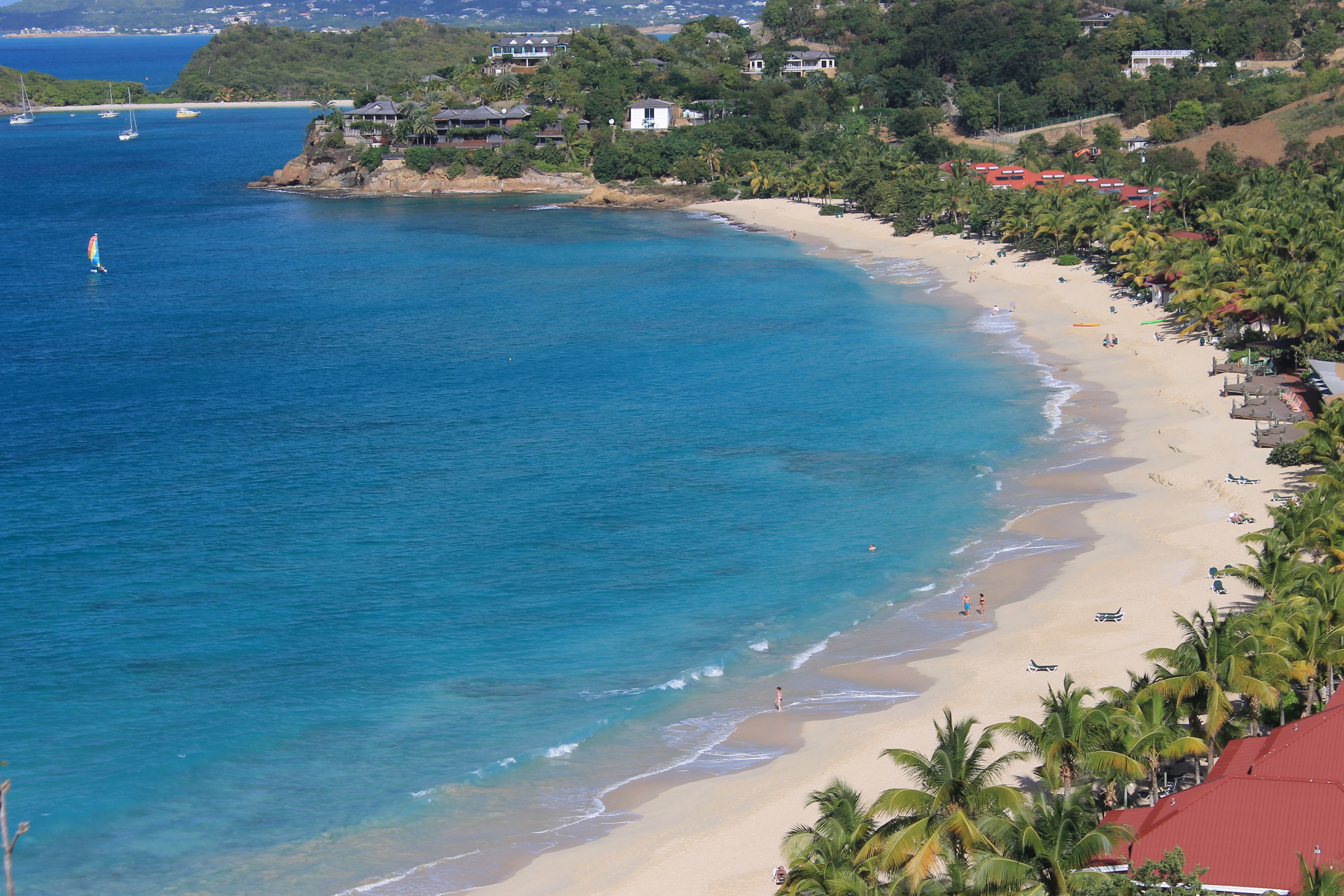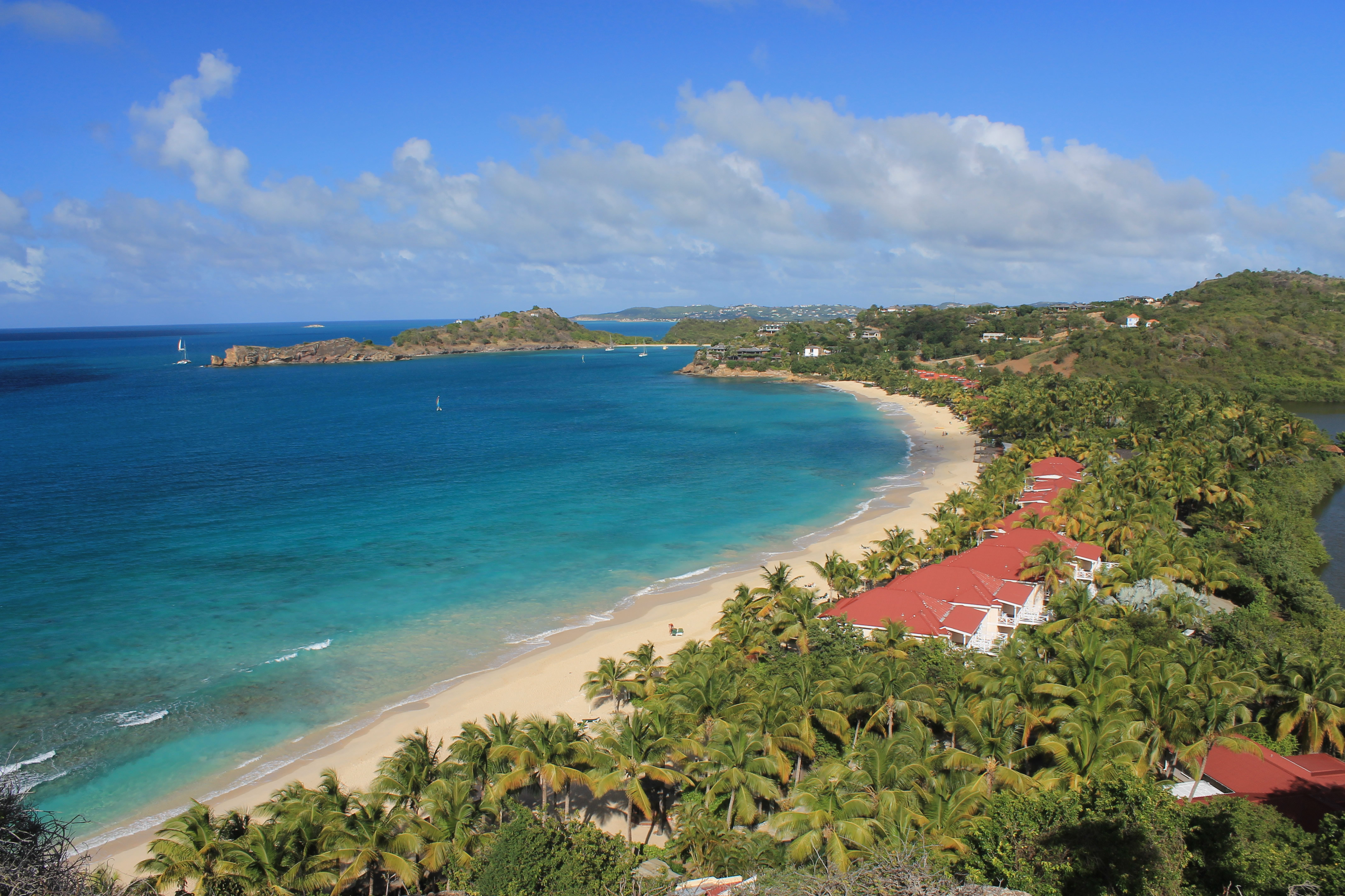 Today there is still agriculture on the island but it's primary industry is tourism. Cruise ships dock every day at St. John's. There are also many hotels and resorts, but rather than being concentrated in one spot (like Waikiki on Hawaii or Seven Mile Beach on Grand Cayman) they are dispersed around the island. There are no high rise hotels - resorts tend to blend into the landscape. A lot of the rich and famous own houses on Antigua: Oprah Winfrey, Eric Clapton, Richard Branson, Giorgio Armani. Even Robin Leach of Lifestyles of the Rich and Famous has a house on Antigua.