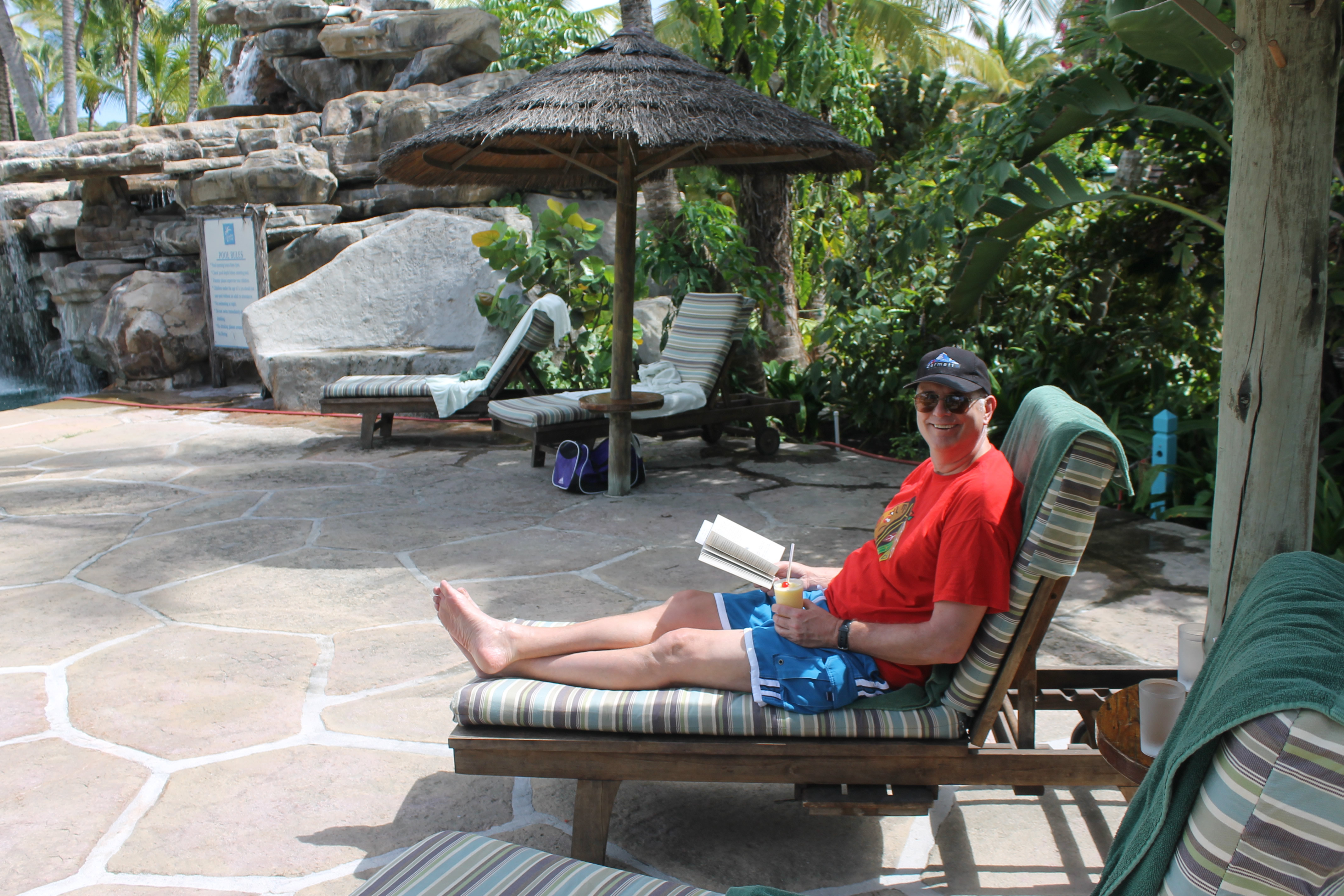 There wasn't much incentive to leave the resort. We passed on all the island excursions and sailboat and snorkel trips that were available. Most days we took one or two walks along the beach. To one end, then the other, and back was a mile and a half. We also walked the path around the lagoon most days. We spent a lot of time reading by the pool, eating meals in the restaurants and enjoying happy hour in the bar. I've already covered our one trip into town.
