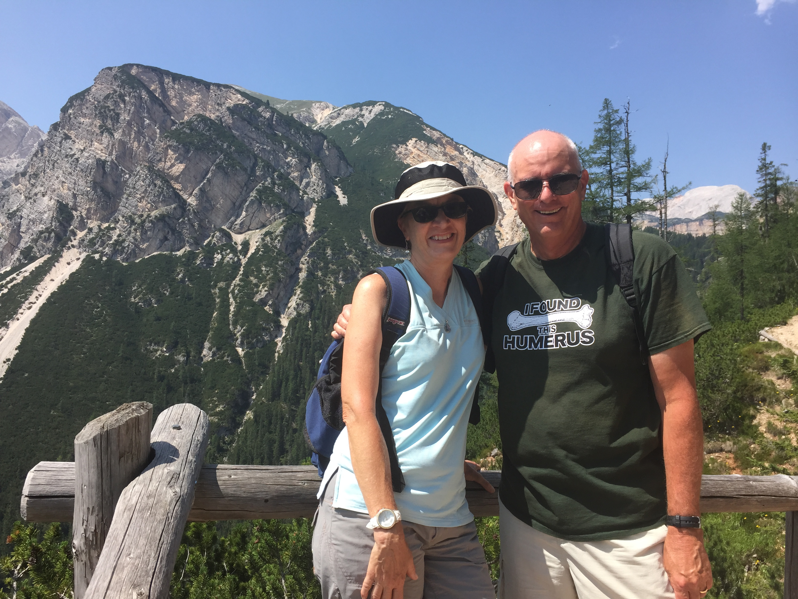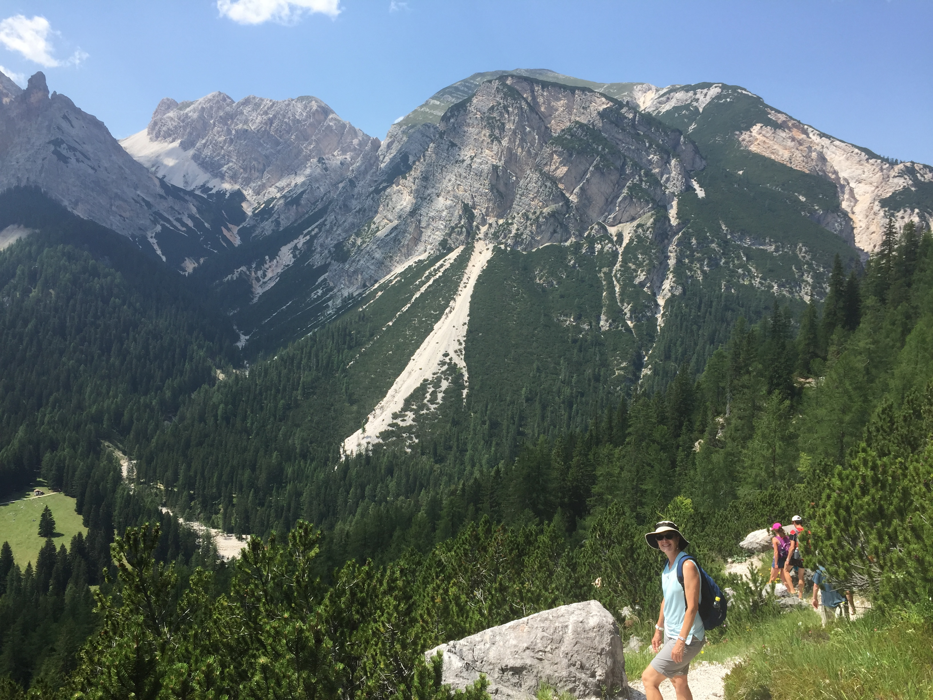 Once again we had a decision to make about what to do for the afternoon. There was a jeep road that came up to the hut so it was possible to take a taxi down to the highway. Or we could hike down. This time there was no long, extended traverse. It was pretty much a straight descent into the valley. Randy, Sandy and I all chose the hike. Regina wasn't feeling quite as ambitious today so she opted for a taxi. We had done three straight days of hard hiking and she was ready for a little bit of a break after a tough day doing the via ferrata. Plus she had more distraction from her work. Sandy and I were both completely clear from our jobs on extended breaks during the summer. Randy was retired. But Regina has a high level position. She's the chief legal counsel for Marriott Europe. Although she was on vacation she was still doing conference calls for work early in the morning and in the evening, so she wasn't able to focus all her energy on the hiking.