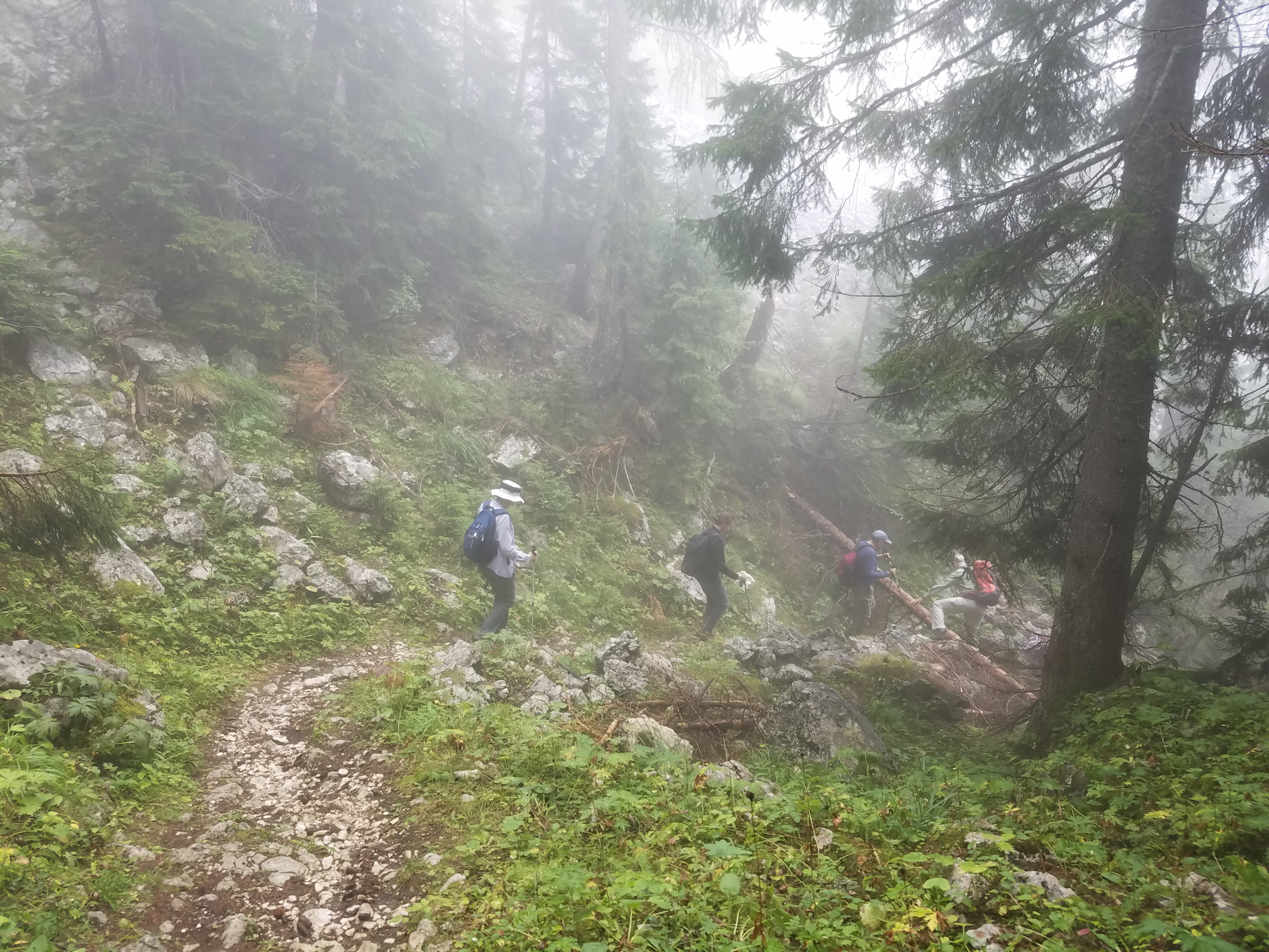 The plan for our first day day in the park was to hike to the Triglav Lakes. This was going to be the hardest hike of the whole trip. At breakfast Roman talked about the weather and it wasn't good. It was overcast, the temperature had dropped significantly and rain was forecast for much of the day. These were not the best conditions for a long hike through high terrain that was exposed to the weather. Roman offered us two options. One was to do the hike as planned. It would be conditional because if a thunderstorm approached when the group was on exposed terrain the hike would be aborted. It undoubtedly meant hiking some or all of the day in the rain.