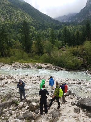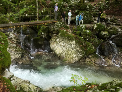 We met the rest of our group a little later at the Triglav National Park visitor center. They had been waiting quite a while for us, long enough to have had coffee and pastries at the cafe next door. I was hungry and hoping for lunch but since the others had just eaten we were going to do another short hike first. This one would be in the valley along the Soca River. We would stay low in the valley to try to avoid the rain.