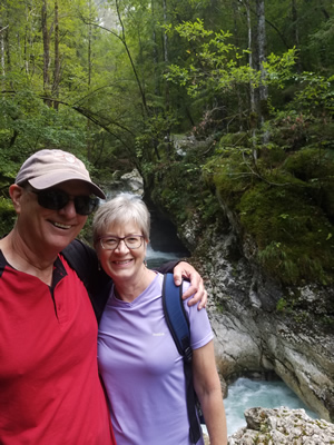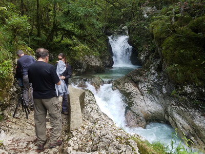 There was still time for one more hike. This time we started walking along the Soca River and then turned uphill to follow a side stream. It was pretty all the way with the best saved for the last, when we ended up in a tiny amphitheater in the rocks where the stream fell in a double waterfall. Roman had billed it as "like a fairy tale". That turned out to be a pretty good description.