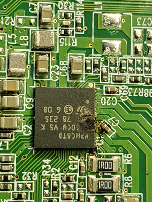 We couldn't just give up though. Ivan took the Blackbird home with him. He had a better setup for troubleshooting there. A few days later he took apart the disc drives and sent me photos that showed the damage that we had done to the circuit boards. He was optimistic though. The hard drive backplane was ok and he said that he could make the correct cable to connect it to the new power supply. Then I would just need to get a new hard drive and the Blackbird should be ok again.