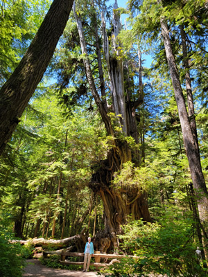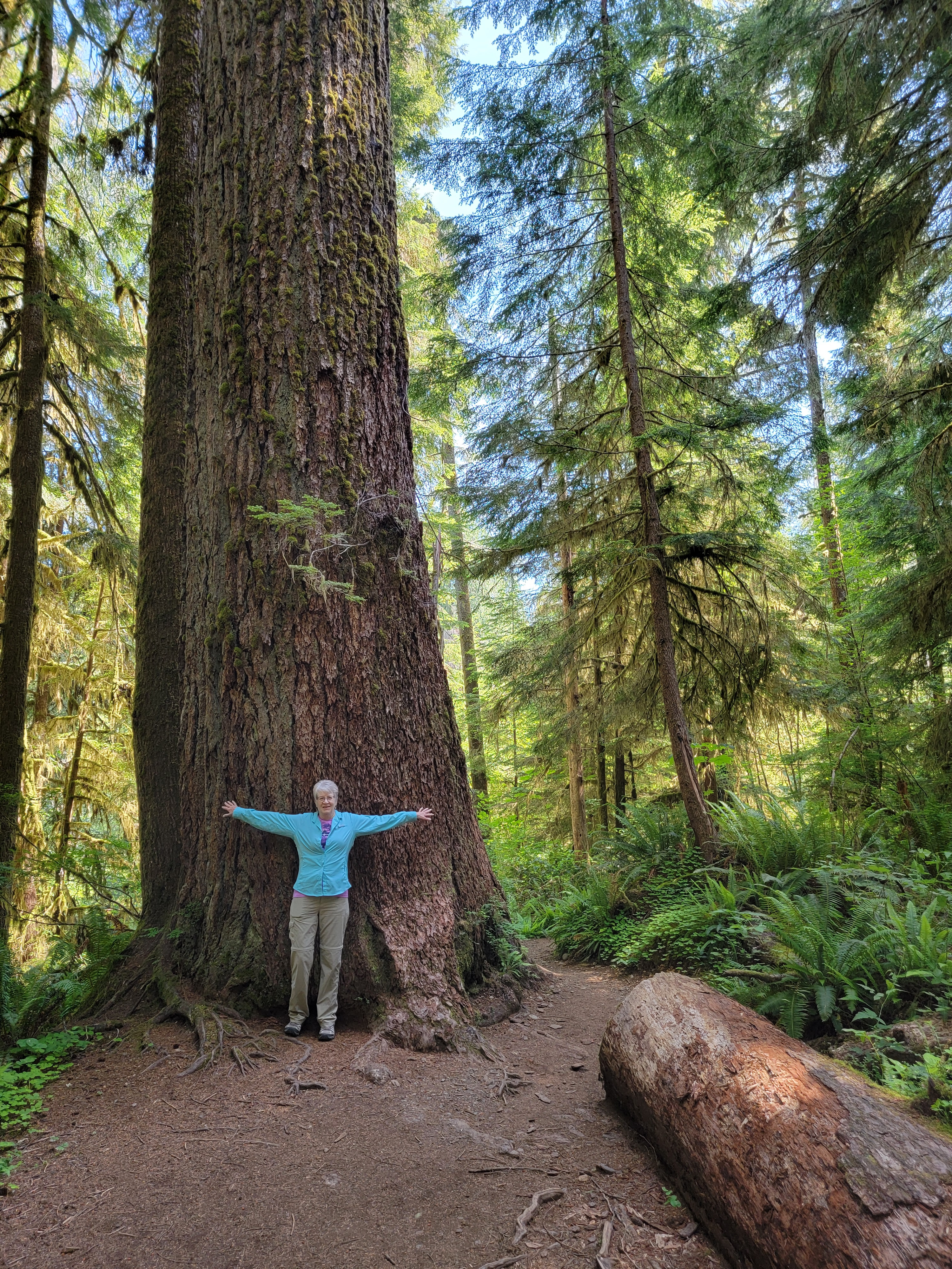 A few miles past Ruby Beach, we took a short side road to the Kalaloch Big Cedar Trail. In just a few hundred yards it leads to a massive Red Cedar tree believed to be a thousand years old. And I thought that I was old. It used to stand 175 feet high but in 2014 a storm split it in half. While the collapsed section is decaying the remaining portion of the tree is still alive. The trail continued for another half mile, making a loop that went past a number of other large cedar trees.