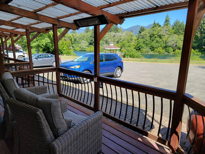 We opted instead for the Quinault River Inn, a small lodge just a few miles away. It's right next to the Quinault River and only has eight rooms plus a few RV spots. They have a nice patio the whole length of the building that faces the river and the rooms looked large and comfortable. We went with them and it turned out to be a good choice. We enjoyed sitting out on the patio in the evening with the river flowing by. It reminded me of the Redfish Riverside Inn in Stanley, a favorite of ours that we go to almost every year.