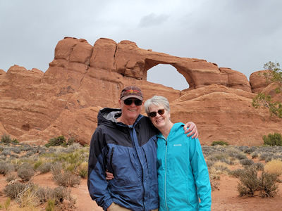 We still has some energy left and the weather was perfect. We went back into Arches National Park that afternoon and did one more short hike - Park Avenue. It's only a short drive from the park entrance. The view from the trailhead is spectacular, looking down a valley with steep rock formations lining both sides. It might be the best view of the entire hike, but it is still worth taking the trail that descends a series of stairs before leveling out to go through the valley. It's a short hike. In just under a mile the trail intersects the road again. We were almost there when Sandy said her foot was finally starting to bother her. I told her to go ahead to the end and wait for me by the road. Meanwhile I hustled back up the way we had come to get to our car and then drove drove down to pick her up. That was enough hiking for one day. We headed back into town and had dinner at Moab Brewery. We spent the rest of the evening checking out the tshirts (me) and jewelry (Sandy) in the shops in town. Hey, it wasn't just for us. We did buy some gifts for friends and relatives. They went in our stash of presents for birthdays and Christmas.
