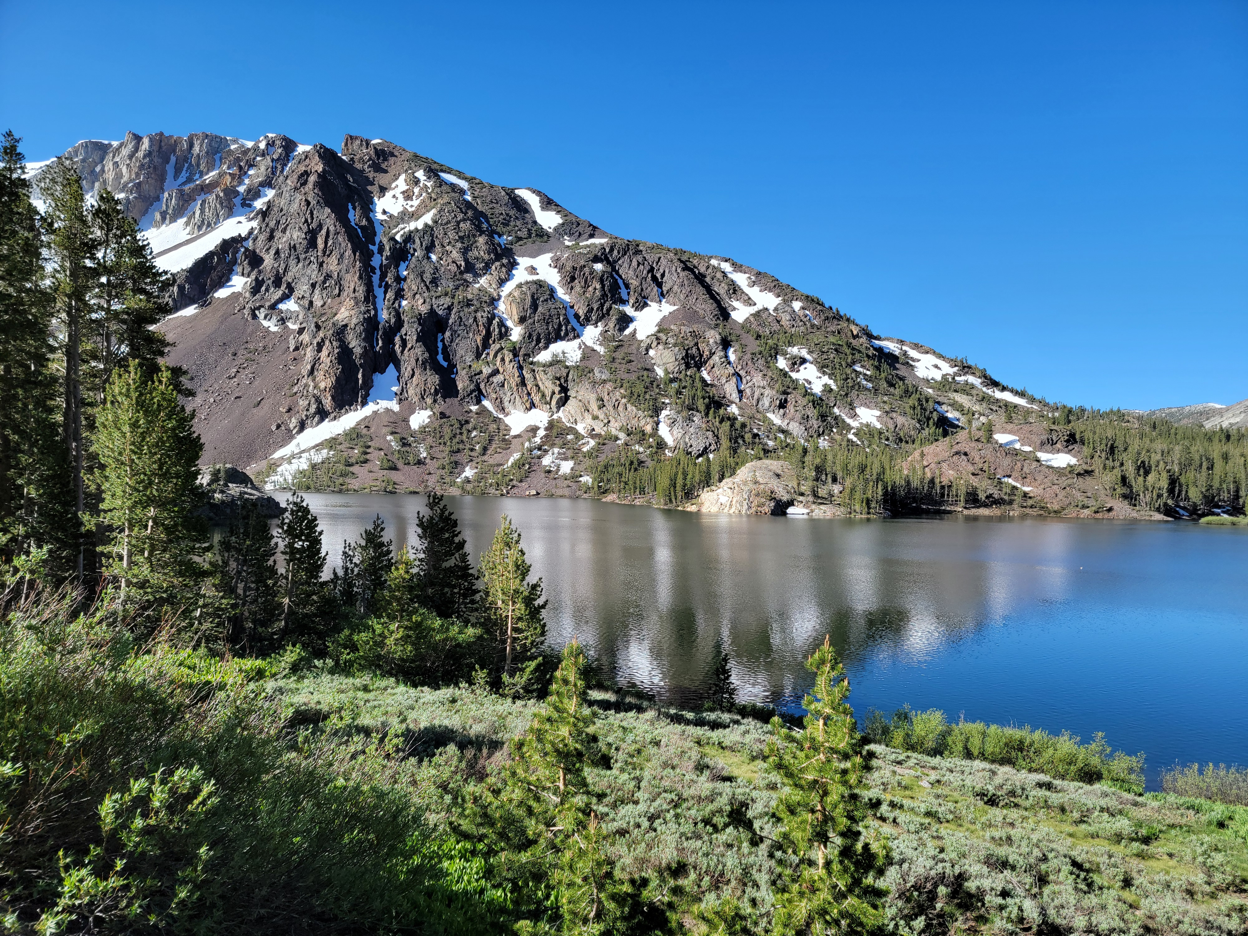 It was a beautiful morning driving into Yosemite. The scenery along the Tioga Pass road approaching the park is fantastic and I stopped at a number of places to take pictures. Just to get into the park requires a permit, but I was early enought that the entrance station hadn't opened yet. My Half Dome permit gave me a park permit as well anyway, but I didn't need it this time. Still kind of sad to think that you have to win a lottery just to be able to enter the park. Too many people.