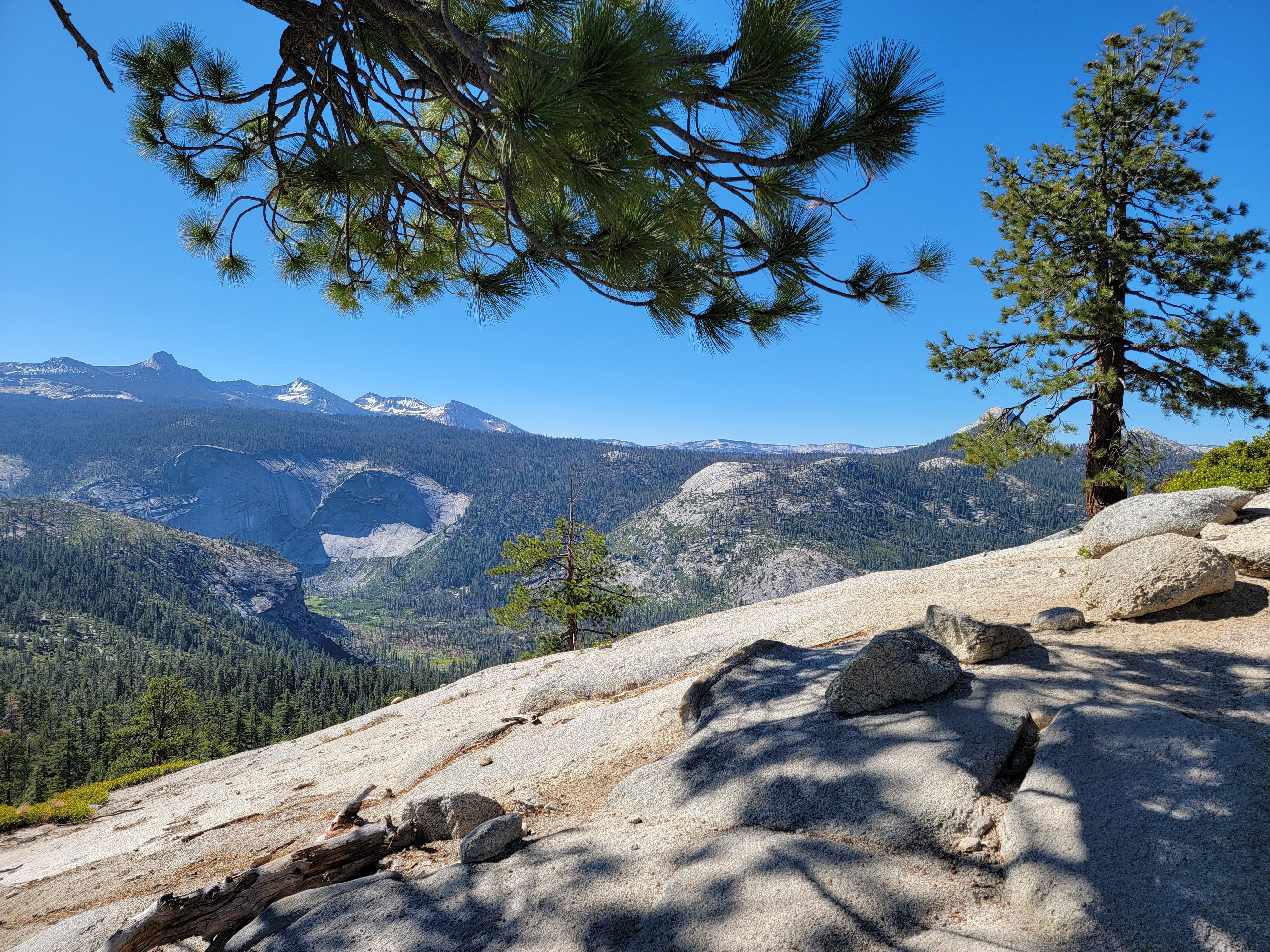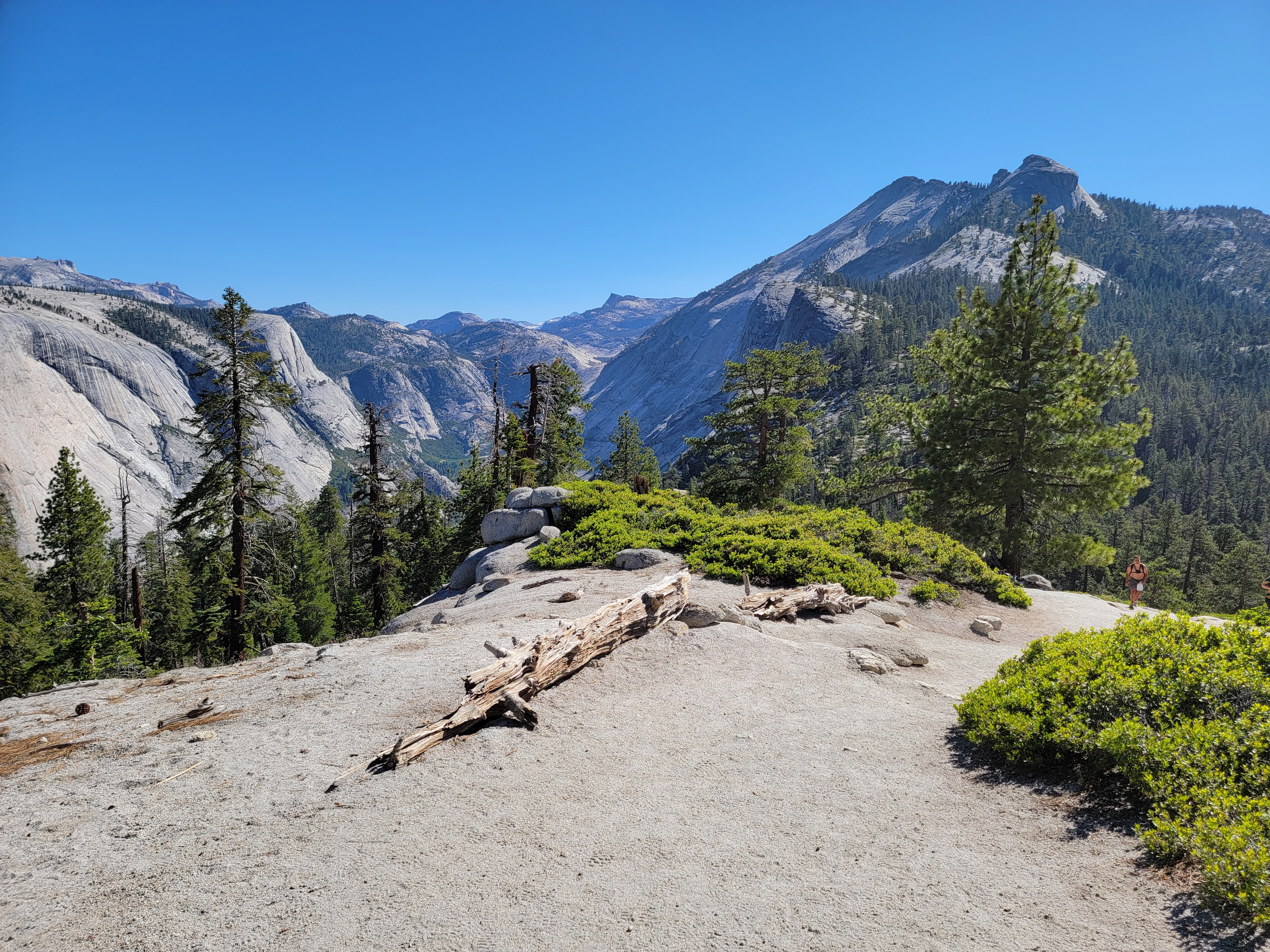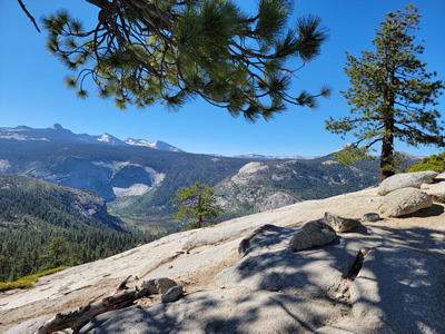 Descending the ridge was glorious. The trail is easy, with a mild downhill grade. The whole time you are looking at the view of Clouds Rest, Tenaya Canyon and North Dome. Add to that the fact that I was feeling really good about doing the cable route and making the summit. I didn't so much hike down the ridge as float down.