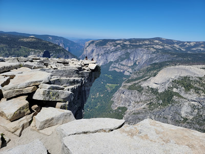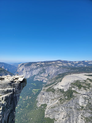 I drank some water and ate a snack. I took photos. There is an outcropping that is the standard photo op while on the summit. People would give their camera to someone to take their picture standing at the edge. I did it for several people and someone did it for me. Unfortunately he took a really poor photo, but I guess you get what you pay for. Usually on climbs I get to the top, spend five minutes, and then head down. I stayed on top of Half Dome for an hour. It was wonderful.