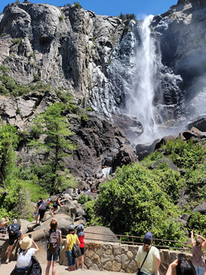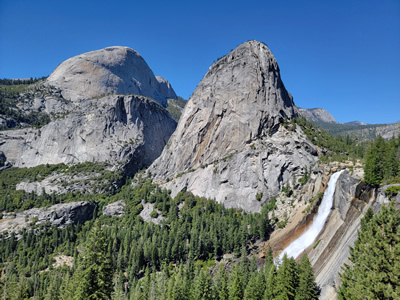The last stretch was a grind. It was hot. I was tired. I took breaks frequently, at least for me. I perked up a bit when I reached the last (first) bridge over the Merced. There were several taps that provided drinking water and people were queued up at them. I had finished the last of my water about a half hour before so I took a long drink before refilling one of my water bottles. Then I was on the home stretch. I reached the road at Happy Isles. I saw the guy I had been hiking down with, the one feeling badly, at the shuttle stop. He must have taken the shorter Mist Trail down and made it before me. He was sitting on the bench, elbows on his knees and head in his hands. He did not look good. I was tired but I was doing a lot better than him.