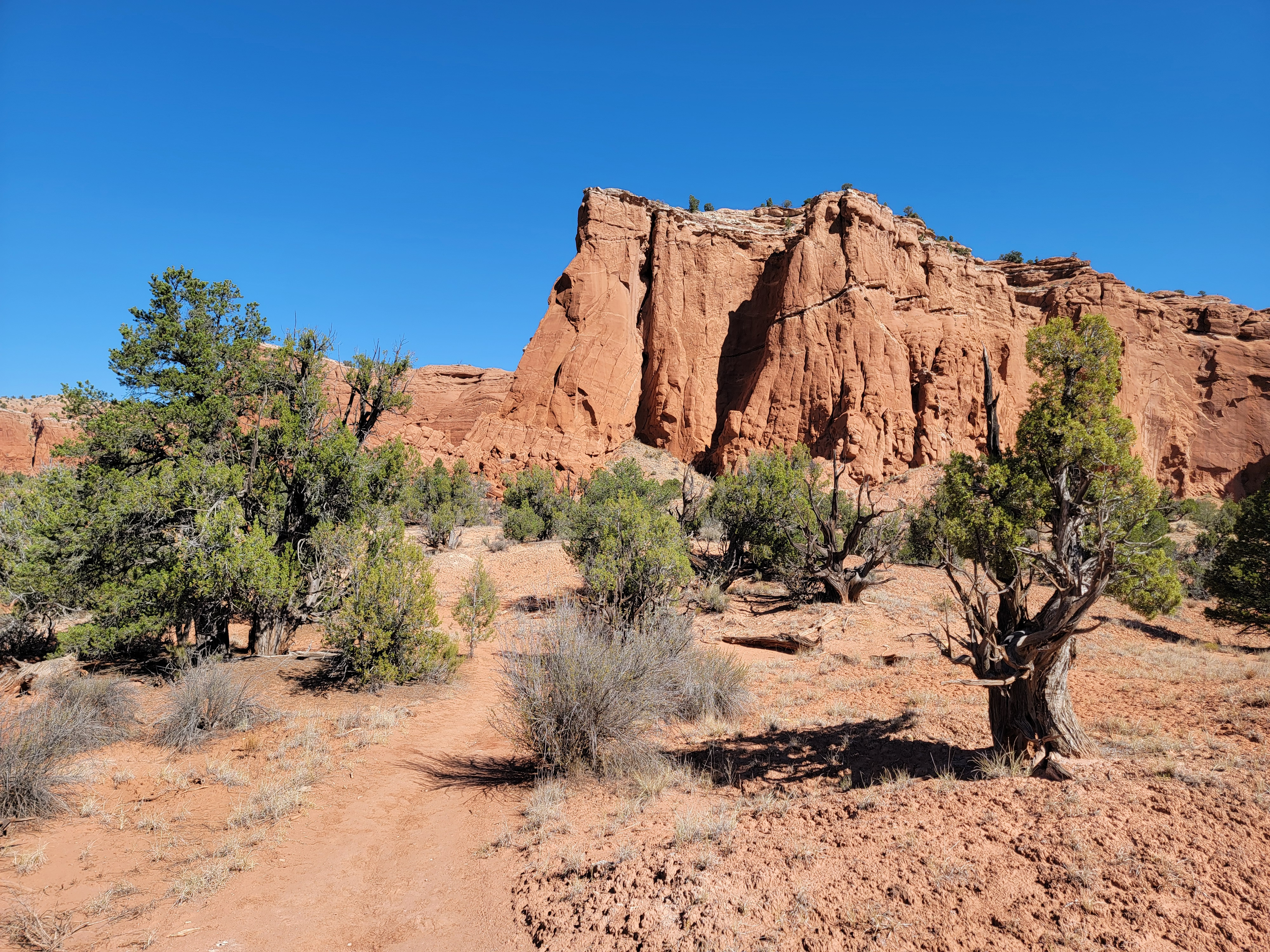 At one point the trail did a few short switchbacks to drop down into a drainage. After we reached the bottom, the tracks we were following in the sandy soil gradually started to fade. I had a strong feeling of deja vu. It was just like when we were on the Cassidy Arch Trail a few days before. We figured that we must have missed a switchback at some point. Obviously lots of other people had too. Now we were following their tracks.