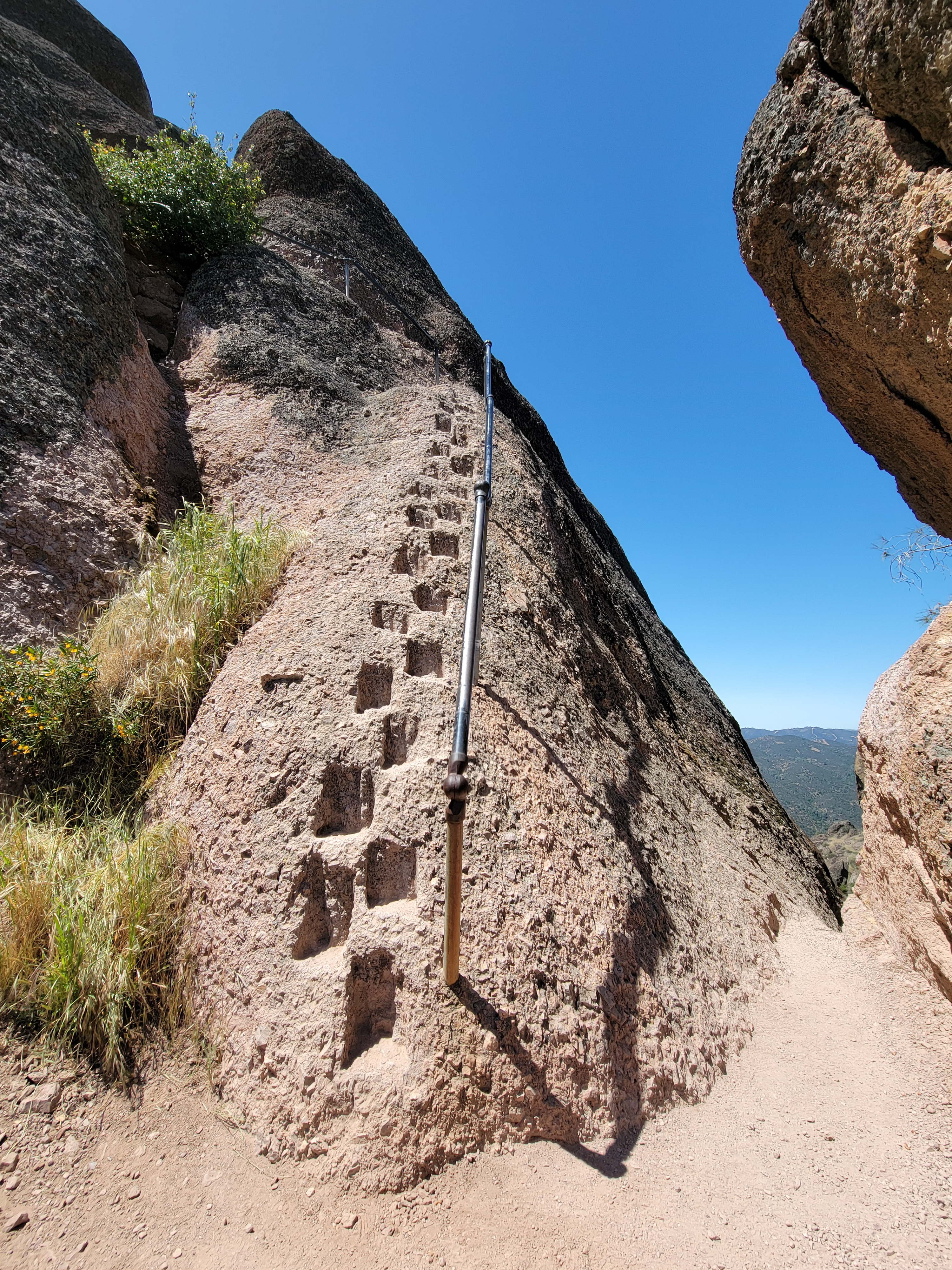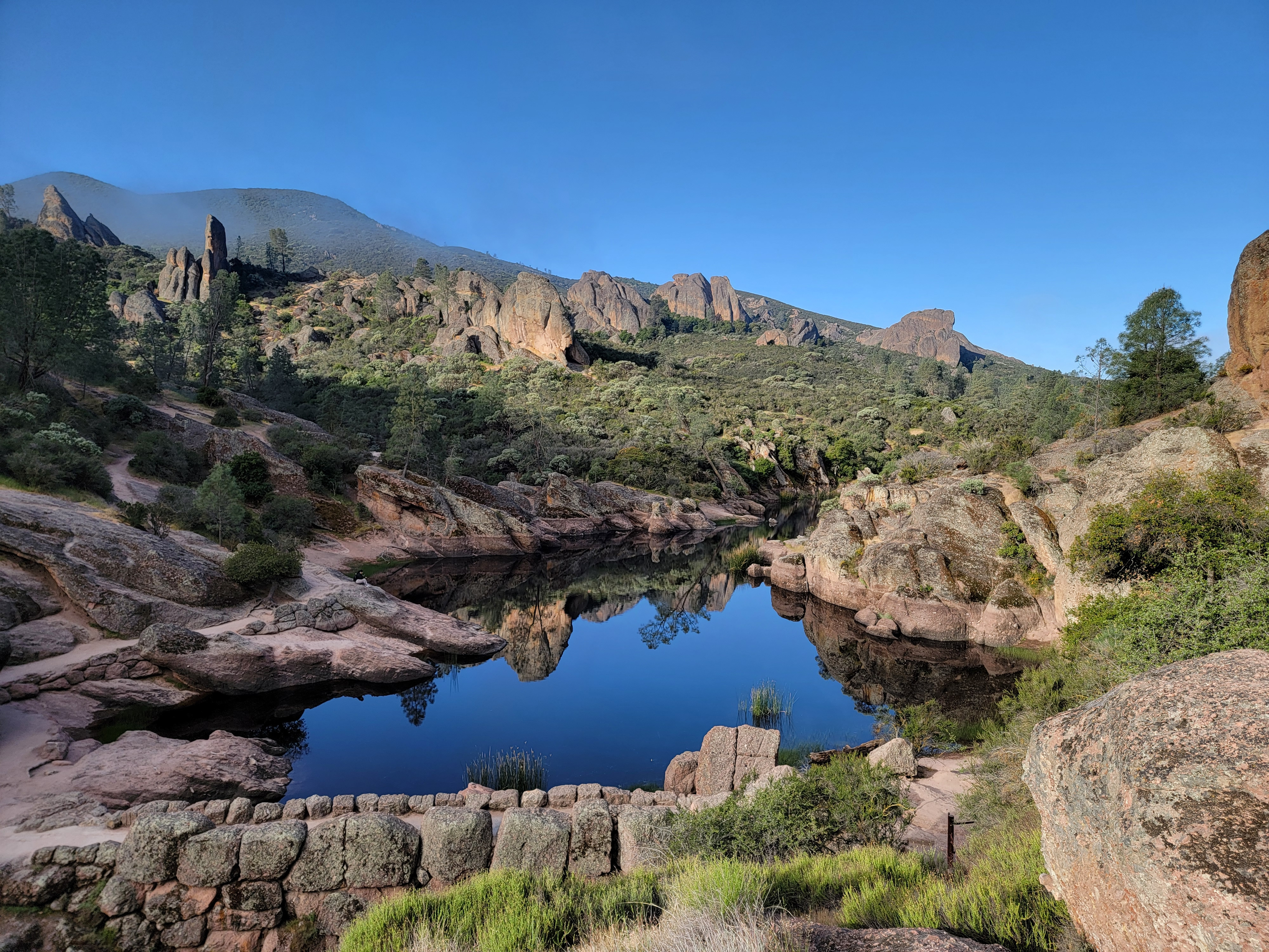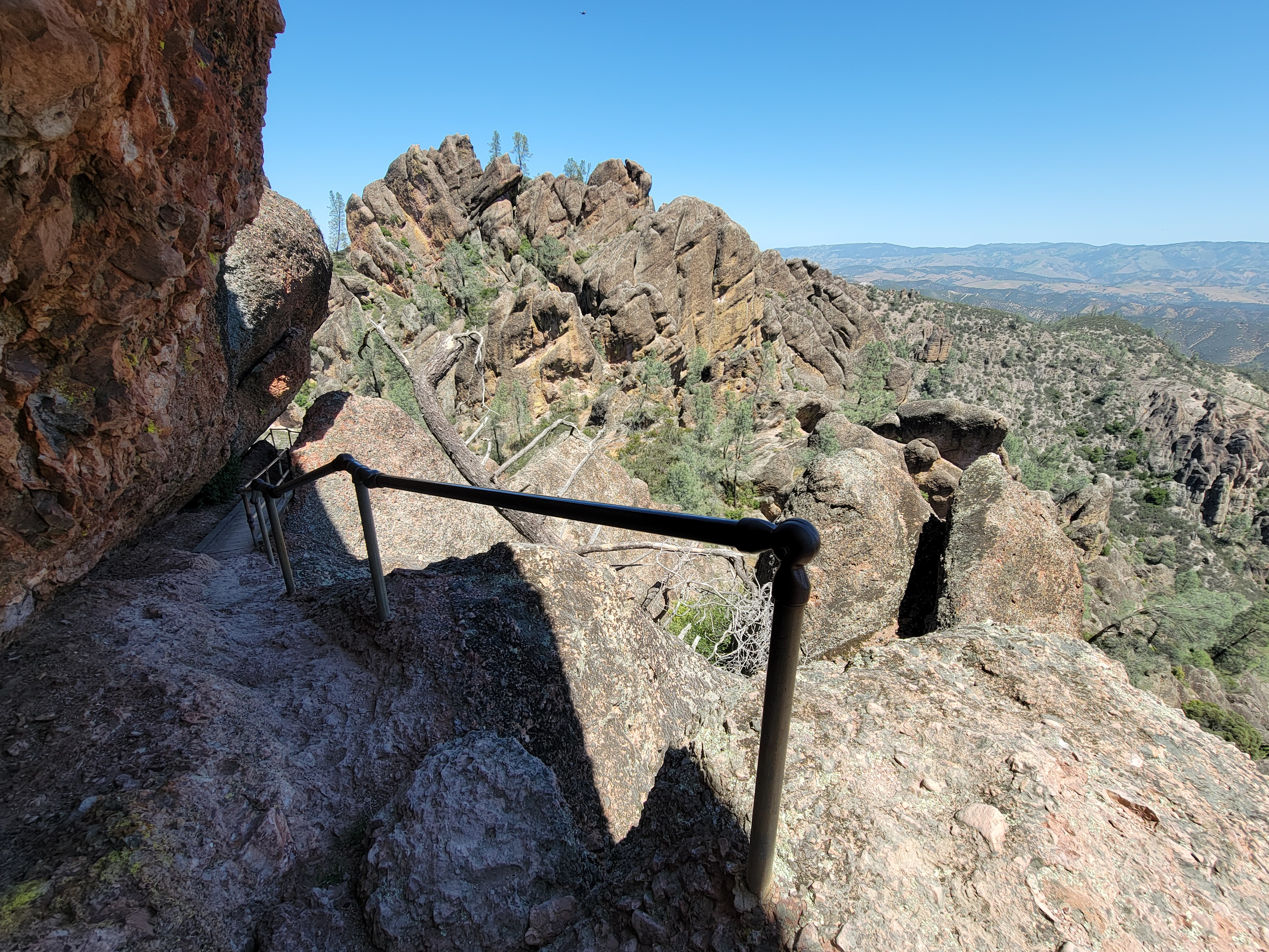 I had two main options for hikes. One was the High Peaks Trail. It's about a five mile loop with 1600 feet of elevation gain. It traverses the ridge to the north of the main park road, winding through many of the rock pinnacles that give the park its name. It features a little bit of scrambling and exposure to make it more interesting. The other option was the Chalone Peak Trail, about 7.5 miles and 2200 feet of elevation gain. It climbs to the summit of North Chalone Peak. At 3,304 feet it's the highest mountain in the park, and for quite some distance around. The one time I had come to the park before I was in my early twenties and had done both trails in a day. But I had been working hard all winter getting ready for my dive trips to Bonaire. I had lost quite a bit of weight and felt strong. I wanted to test myself. If I felt good, I thought I would try to do both trails again.