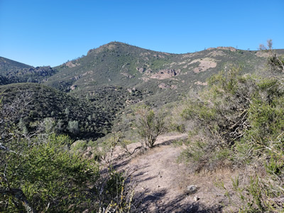 From the reservoir it wasn't much farther to the trail junction. North Chalone Peak is a worthy hike all by itself. I had already done 7.5 miles and 2200 feet of elevation gain. But I felt good and I only had one day here, so instead of heading back to the trailhead, I turned onto the High Peaks Trail. Time to do hike #2.