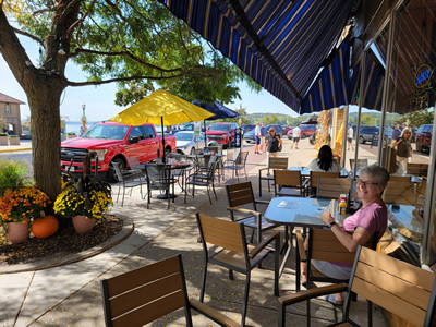 Our next stop was in Mukwonago. We went to The Elegant Farmer. It was a nice shop and we picked up some good snack items for later at the hotel. They also had a deli counter where we got lunch and a separate ice cream shack where we got dessert. Just a few blocks away we stopped at a quilt shop called Quilt-agious. As usual, Sandy was able to find something unique to buy there. We did pretty well in Mukwonago considering that we were just passing through.