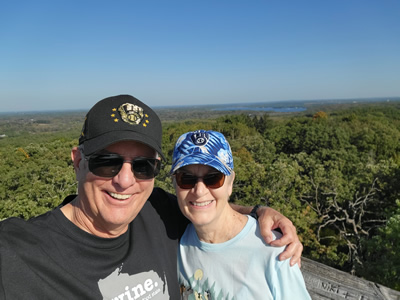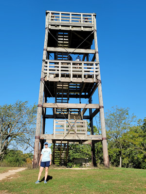 Suitably fortified, we made the short drive to Kettle Moraine State Forest - Lapham Peak Unit. Now I grew up in Milwaukee and I don't usually associate the word "peak" with anything in Wisconsin. Hills maybe, but no mountains. But I read somewhere that Lapham Peak provided a good viewpoint over a large area. We drove to the parking lot at the end of the road and hiked from there to the top of Lapham Peak. It was about a hundred yards - not exactly a major mountaineering feat. Like most peaks (hills) in Wisconsin, it was heavily forested which meant that we couldn't see anything because the trees were in the way. But there was a 45 foot high observation tower at the summit. We climbed to the top and we could see over the trees for a long way in all directions. Lapham Peak is 1,233 feet high and is the highest point in Waukesha County. The view was quite impressive.