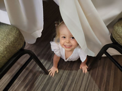 The wedding was at the Oconomowoc Community Center, which is right downtown on the shore of Lac La Belle. The setting was very pretty. There was an altar and lots of chairs on the lawn behind the building, looking right out at the lake. The ceremony was held there. Colleen and Drew made a good wedding couple. Brooklyn was one of two flower girls and looked very cute. She did her job well. The weather was perfect and the ceremony was very nice. Afterwards the reception was in the community center. There was good food and drinks and dancing. I was pretty happy with the party because I didn't get drafted to dance. Sorry to disappoint but that is how I rate weddings. Colleen's brother Devin made up for my absence from the dance floor by putting on quite a show all night.