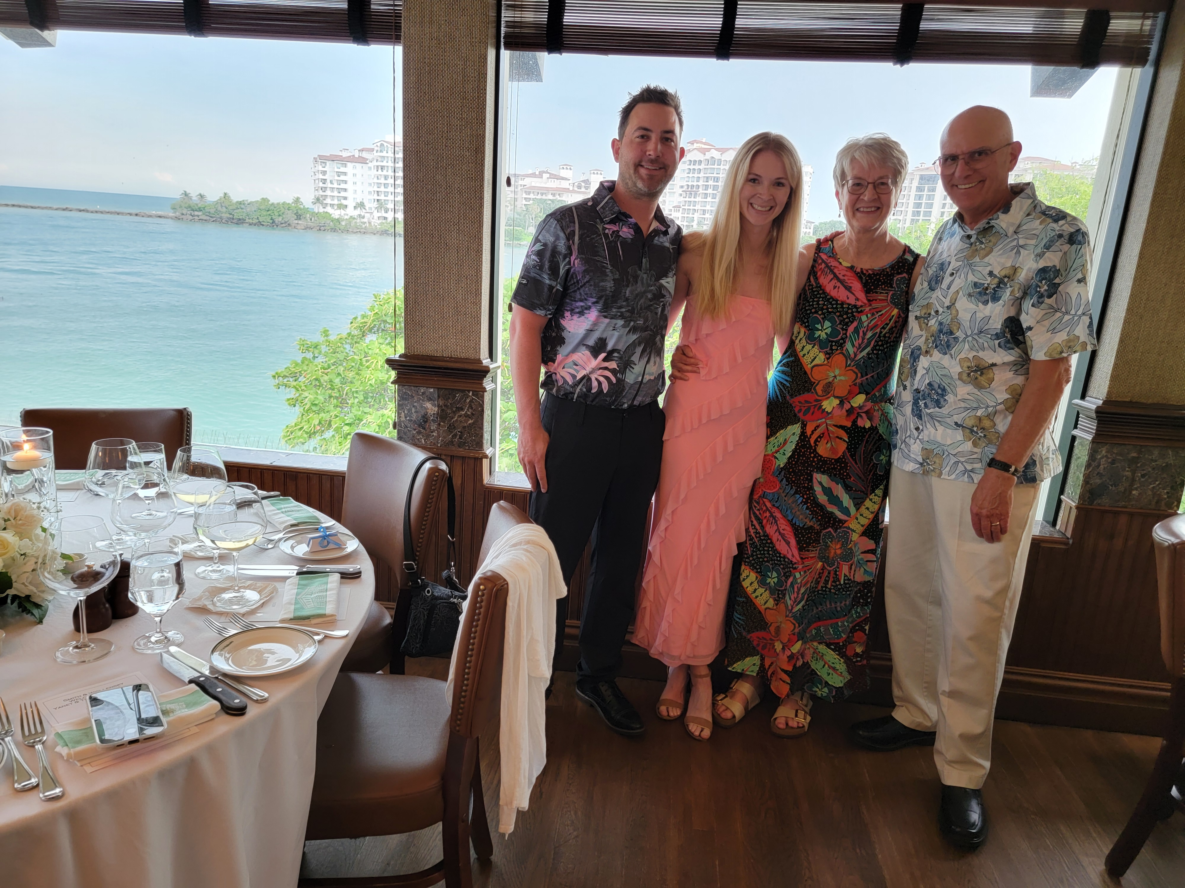 The event was at Smith & Wollensky's. It would have been a long walk. Since the ladies were wearing dresses that weren't ideal hiking wear, we took an Uber with Jimmy and Shannon. It was a fantastic venue, right on the water near South Pointe. It was a wonderful evening. A good dinner. Drinks. A chance to reconnect with some people we hadn't seen for a long time, and to meet new folks on the other side of the new family. We took lots of photos. An excellent celebration of Tim and Yanet's marriage.