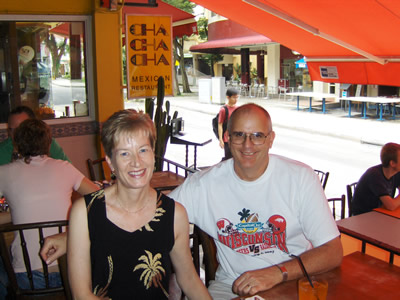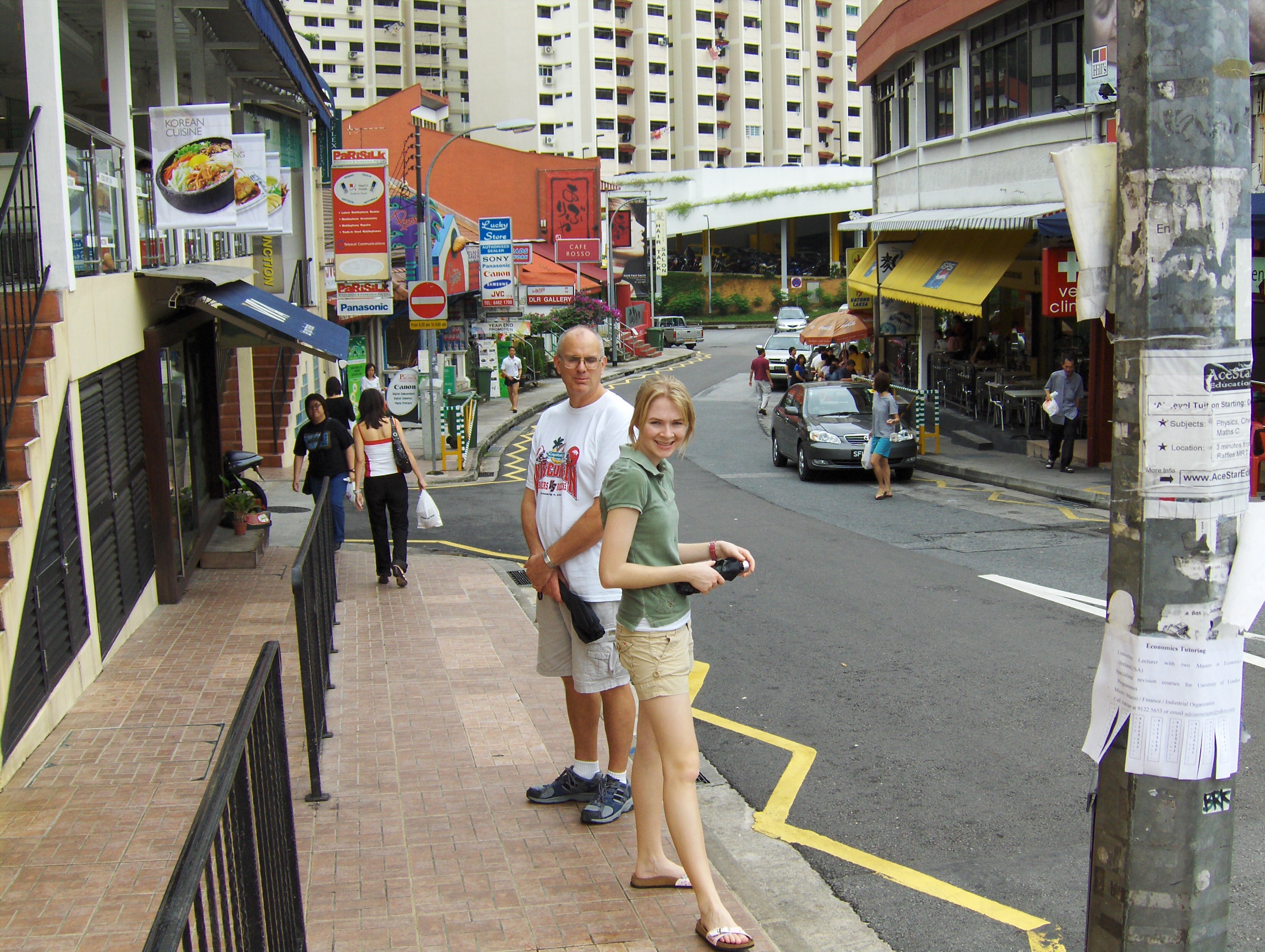 After we ordered our tv, we wandered around Holland Village for a while. We had lunch at a Mexican restaraunt named "ChaChaCha". This was a good find. Although common in North America, Mexican restaraunts are actually quite rare in the rest of the world. And it was really good too. A little variation they had was nice - they brought you the fixins for your taco and let you put it together yourself. Good. I did feel badly that I had a Heiniken and not a Dos Equis, but that was what they had. Hey, it tasted great!
