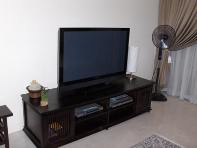 Sunday all three of us went down to Holland Village. We had a big decision to make. The LCD tv, with true 1920x1080 resolution was our first pick. But it was for lots of other people. None were in the warehouse. The guy estimated maybe two weeks to get one. Sandy was suspicious. We went with the Pioneer plasma. I feel a little badly, since I just convinced Lorri to go with a 1080 LCD, but they are behind on HD tv here. Anyways, it arrived two days later and it looks great (both the picture and the tv in our living room).