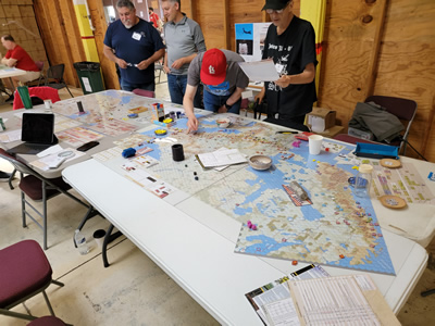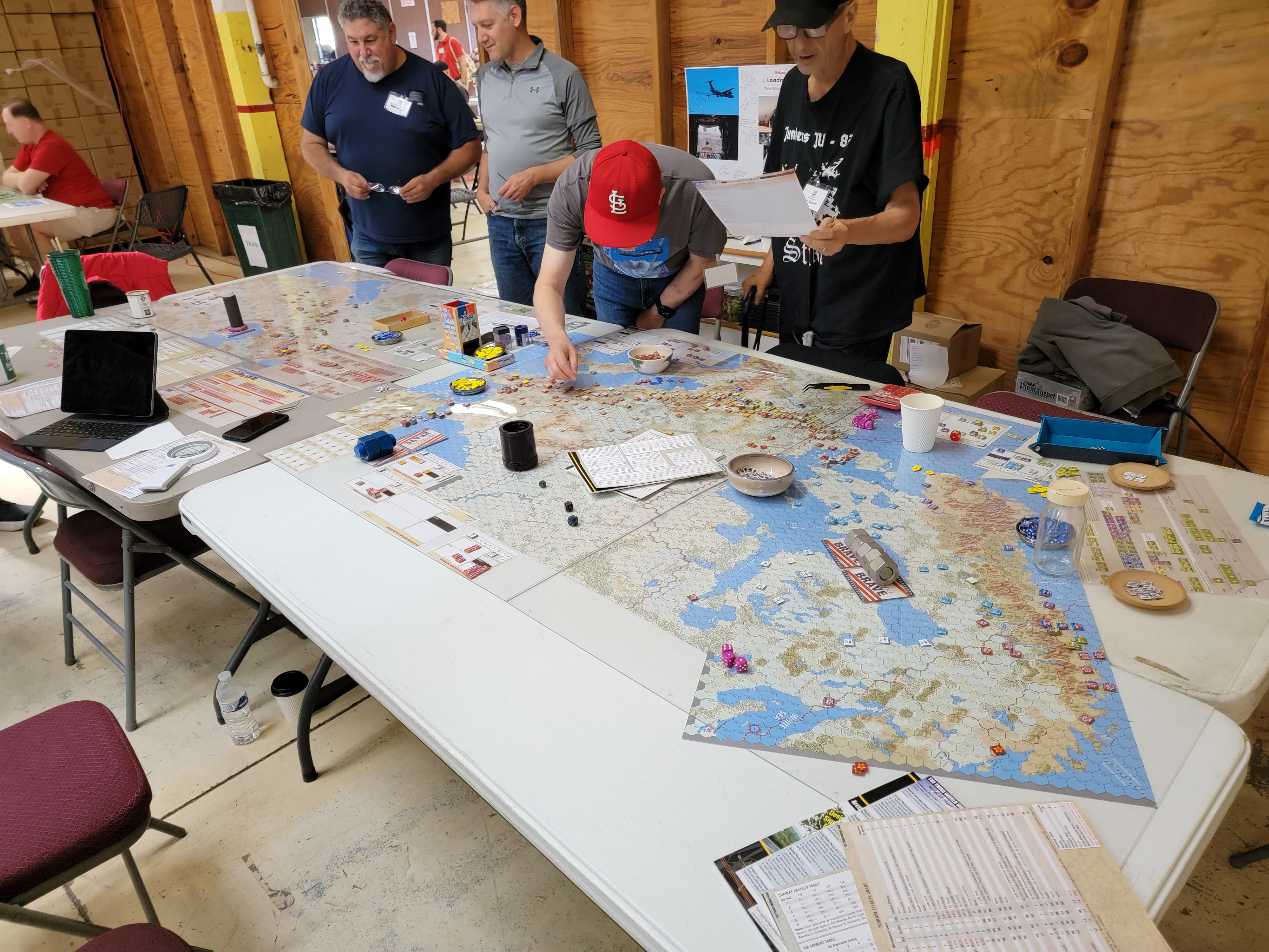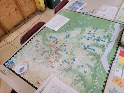 The next day I was at the warehouse early and ready for wargaming. Since I come in the night before I am usually one of the first ones there on Thursday but this time there was a large game of Third World War already set up. It was the new Compass Games Deluxe Edition, a reprint that combines all four of the original Third World War games published by GDW in the 1990's. Games that big are common at Consimworld Expo but not at GMT weekend. It took up four tables and had six guys playing.